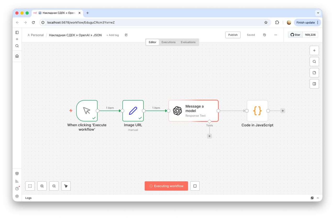 Figure 3. n8n test bench where the logic was validated before packaging into the Telegram bot.