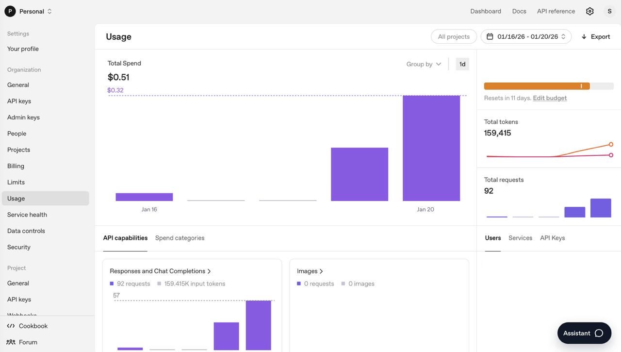 Figure 2. Test OpenAI spend: 92 requests, $0.51. This was used to estimate per-photo processing cost before production rollout.
